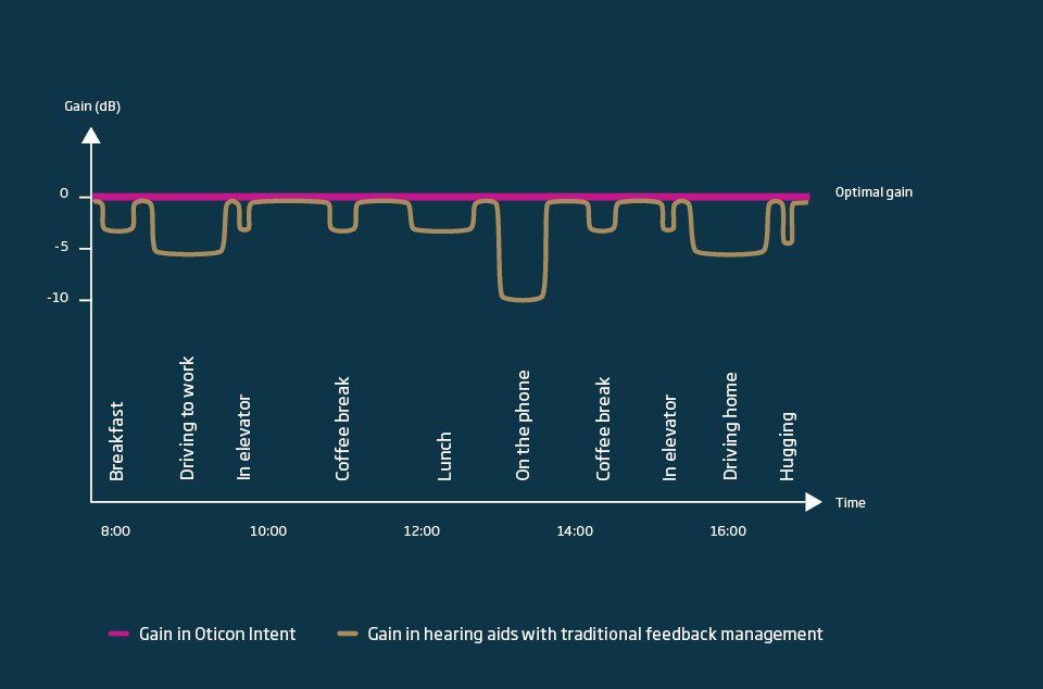 More than 7 out of 10 hearing aid users are challenged by disruptive sounds in their everyday lives*. That’s why Oticon Intent comes with two innovative features designed to protect users from disruptive sounds while giving them full access to meaningful sounds – helping them engage in life fully.